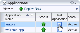 To access the deployed application, click the icon under the Test Application column in the Applications table.