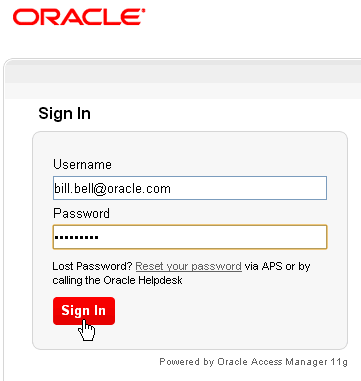 Enter the Username (which in this tutorial is bill.bell@oracle.com).