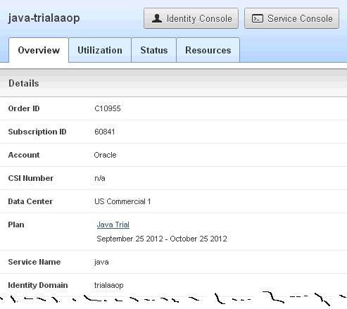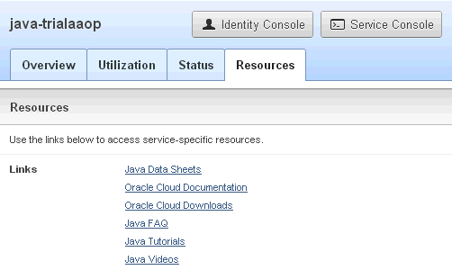 Displayed on the Java Cloud Service home page is a lot of information about the service. We will look at each part of this page for the remainder of this tutorial.