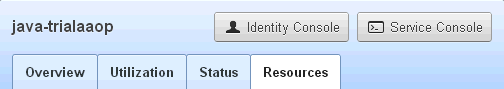 Notice above the tabs there are buttons to access the Identity Console and the Service Console.