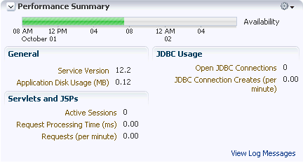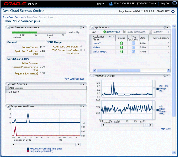- General information including the version of the Java Cloud Service and the megabytes of disk usage