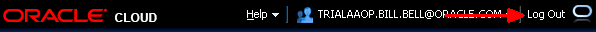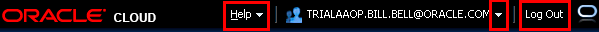 Finally, let's look at the title area. Here you find the Help menu, a drop-down next to the Identity Domain name to select accessibility options, and the Log Out button.