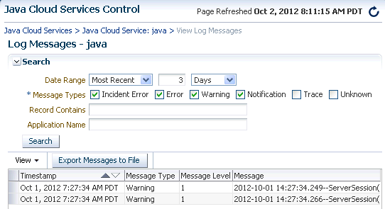 Monitoring a Java Service by Using Java Cloud Services Control