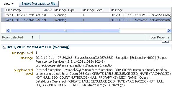 Select a row in the table to see the details of the message.