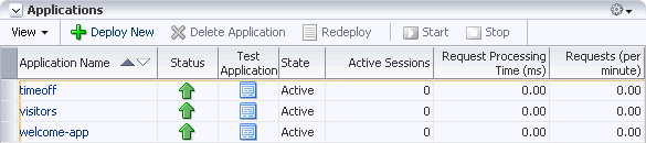 The Deploy New button takes you to the deployment wizard to deploy a new application.