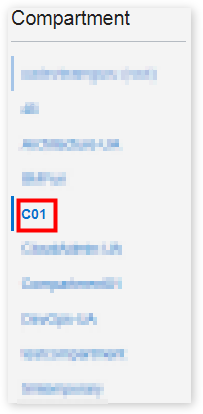 Description of the illustration select_storage.png - Select the sandbox compartment designated for you from the Compartment list on the left. In this example, select C01.