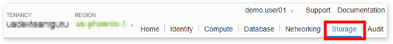 - In the Console, click Storage and then click Object Storage.