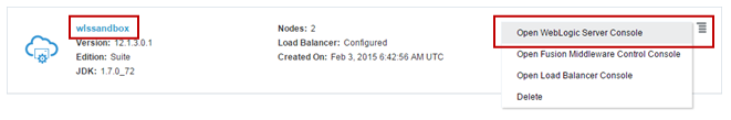 icon for the service instance that you want to manage and click Open WebLogic Server Console