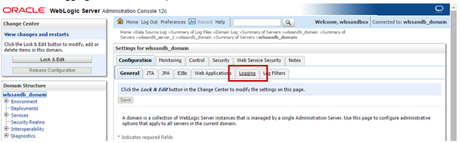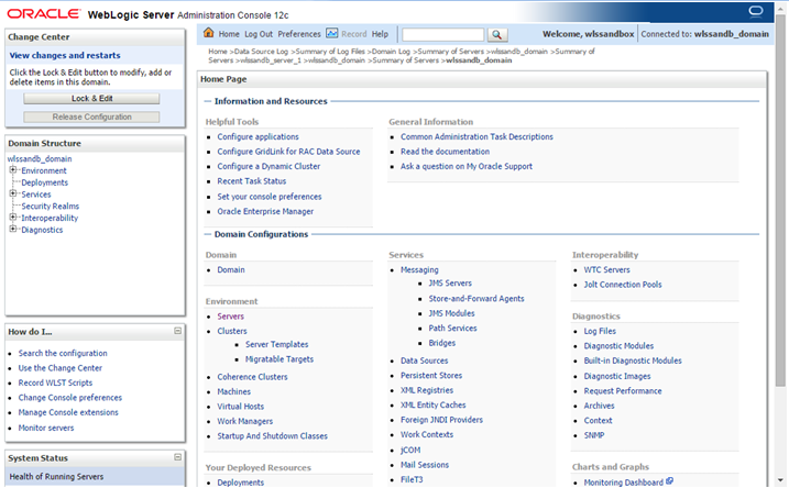 Description of this image The WebLogic Server Administration Console home page now appears.
