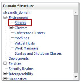 Under the domain name in the navigation tree click to expand the Environment node and click Servers.
