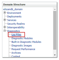 In the navigation tree, under the domain name, expand the Diagnostics node and click Log Files.