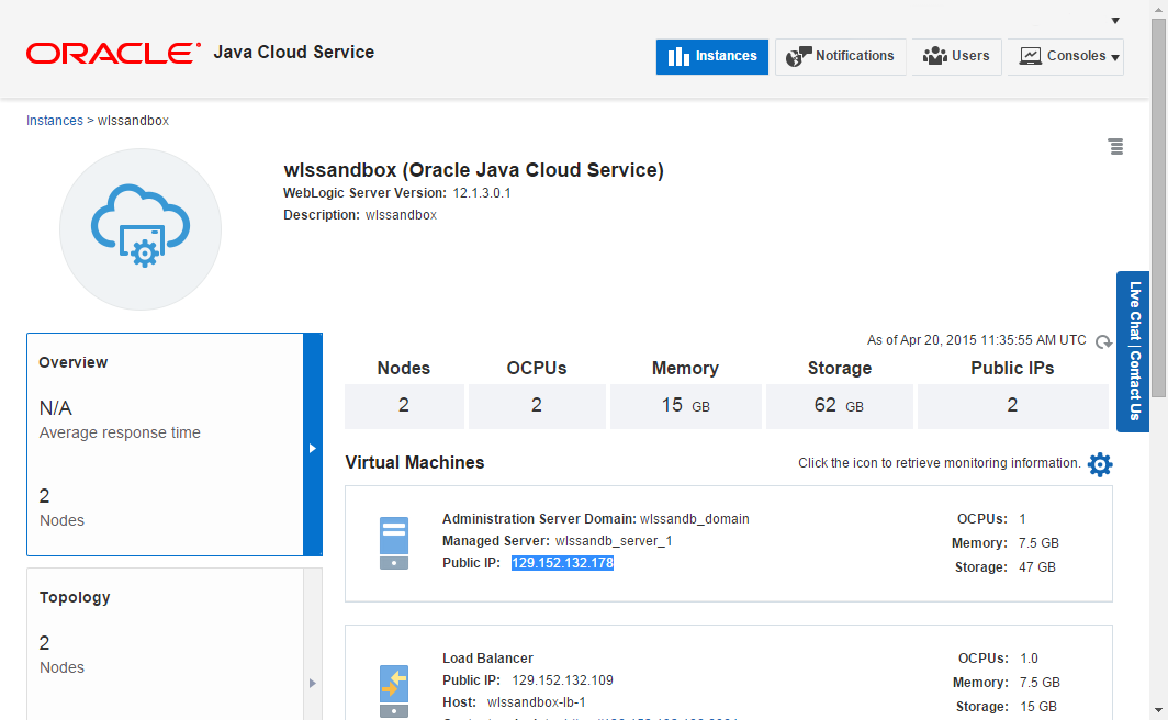 In the Oracle Java Cloud Service section, click Open Service Console.
