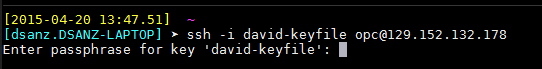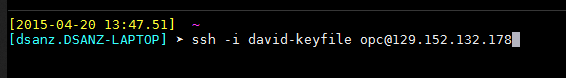 You will also have to provide your SSH client with the SSH private key you created for use with Oracle Cloud Services.