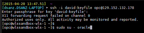sudo su – oracle(oracleis the owner of the WebLogic domain directory).