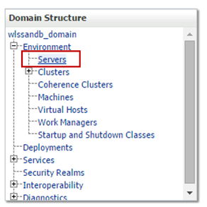 In the navigation tree under the domain name click the Environment node to expand it and then click Servers.
