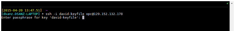 You will also have to provide your SSH client with the SSH private key you created for use with Oracle Cloud Services.