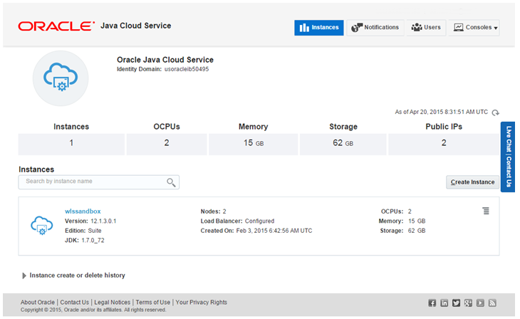 In the Oracle Java Cloud Service section, click Open Service Console.