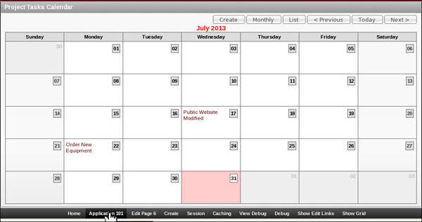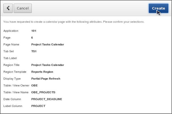 Click the List of Values icon to select the Project Tasks Calendar page and click Create Button.