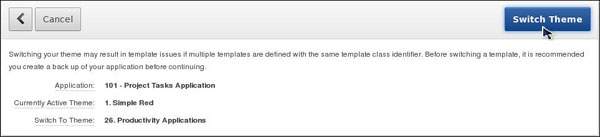 To confirm the theme switch, click Switch Theme.