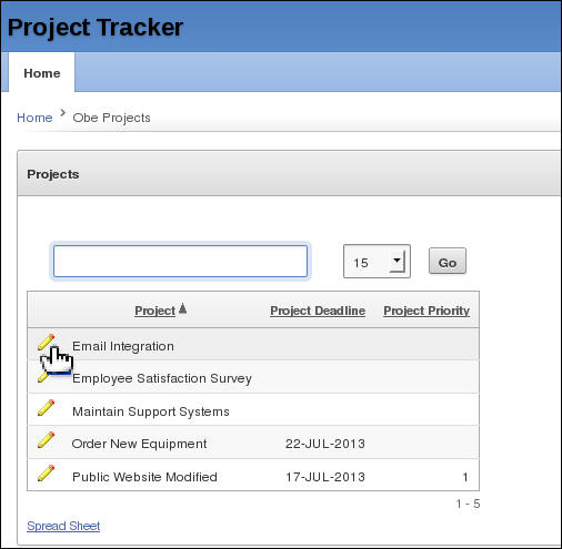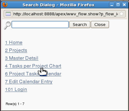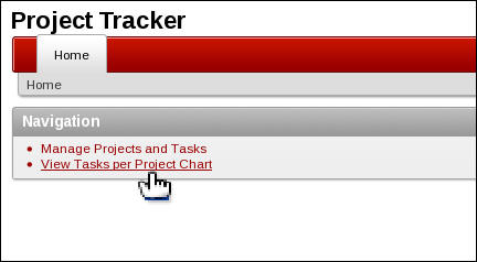Click View Tasks per Project Chart. The page is listed. Click the Application<n> link in the developer tool bar.