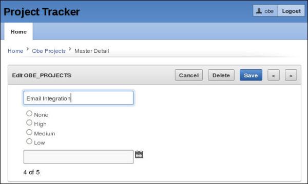 Now that you have completed your Master Detail Form and Flash Chart, you need to add them to the Home Page Navigation List. Perform the following steps: