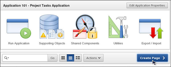 Click Create Page > in the Project Tasks Application home page.