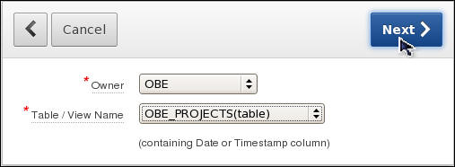 Select OBE_PROJECTS for the Table / View Name and click Next > .