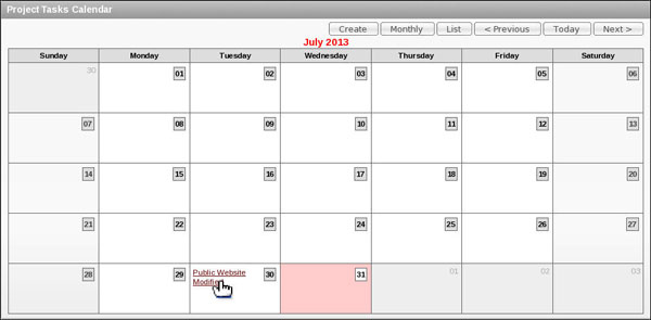 Select a project on the calendar. In this case, select Public Website Modified.