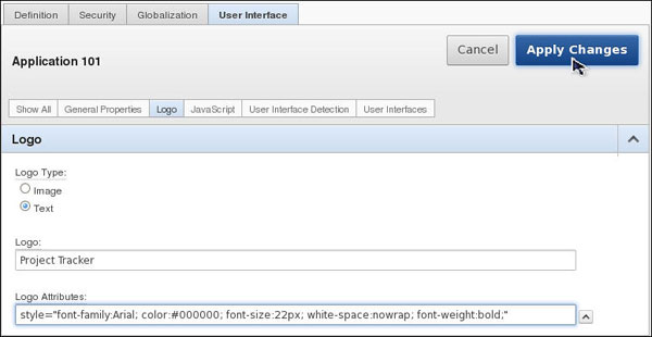 Select Text for the Logo Type. Enter Project Tracker for Logo and select Black Text from the list of Logo Attributes. Then click Apply Changes.