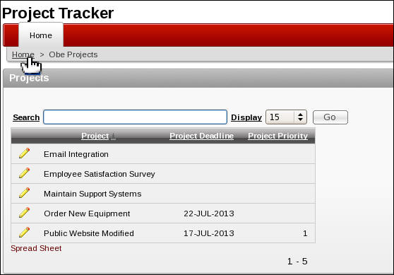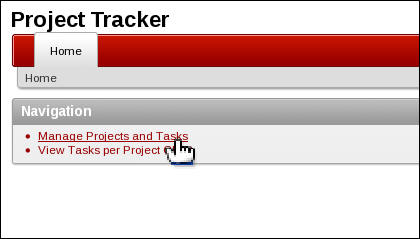 The Projects report is displayed. Click the Home link.