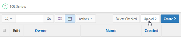 From the Oracle Application Express home page, click the down arrow next to SQL Workshop, and select SQL Scripts.