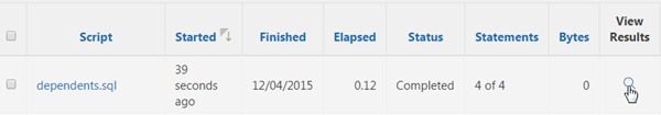 The script completed execution. To view the results, click the View Results icon.