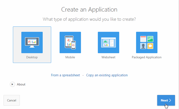 Click the down arrow next to the Application Builder tab and select Database Applications.