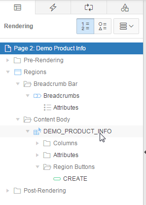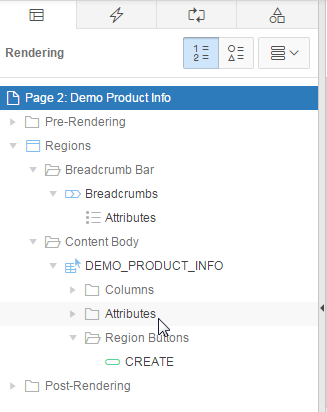 In the Rendering tab, under DEMO_PRODUCT_INFO, click Attributes.