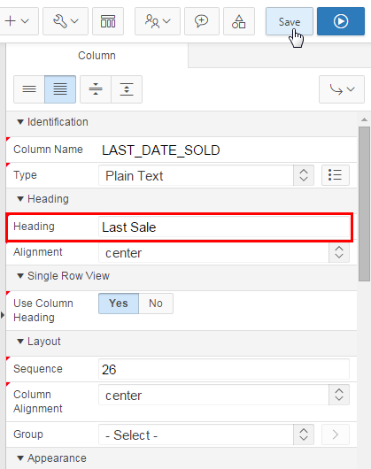 In the property editor, under Heading, change Heading to Last Sale.