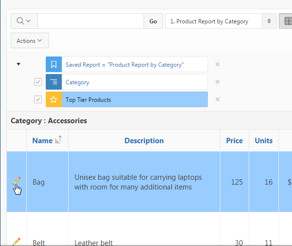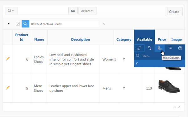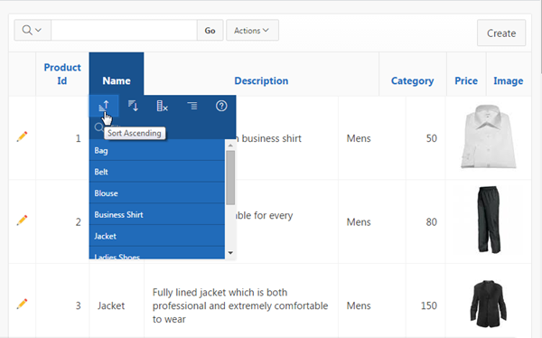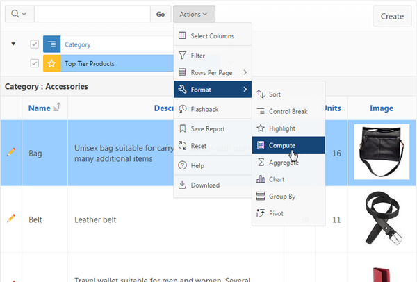 Notice that the **Sales column is now displayed before the Image column. You can also aggregate a particular column. Click the Actions menu, select Format , and select Aggregate.