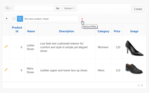Notice that only the rows where 'shoes' is found are listed. A filter was also created above the report data.