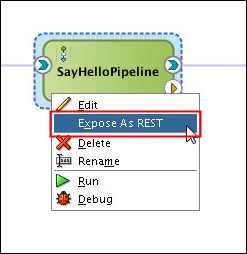 On the SayHelloSB page, right-click SayHelloPipeline and select Expose As REST.