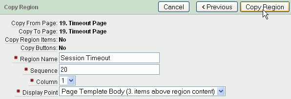 | . | Enter Session Timeout for Region Name and click Copy Region.