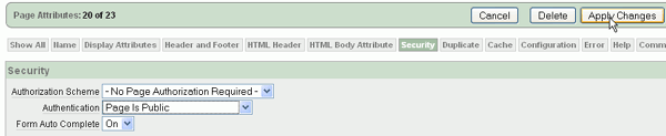 | . | Select Page is Public for Authentication and click Apply Changes.