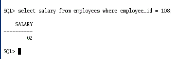Re-execute the following query: select salary from employees where employee_id=108; Notice the change in the salary is now 62.