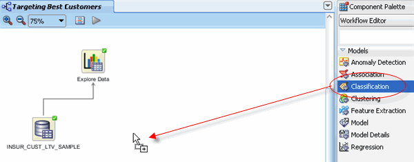 B. Then, drag the Classification node from the paleltte to the Workflow pane, like this: