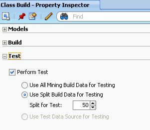 Before building the models, select Class Build node and choose the Test tab in the Property Inspector. Then, change the split to 50, as shown here: