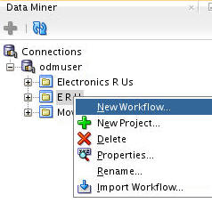In the Data Miner tab, right-click odmuser and select New Project, as shown here: