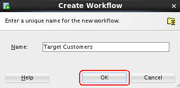 - In the middle of the SQL Developer window, an empty workflow tabbed window opens with the name that you specified.