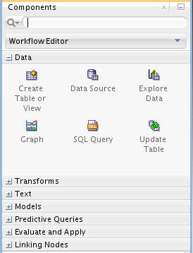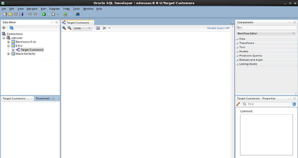 Before you create a Data Miner Project and build a Data Miner workflow, it is helpful to organize the Data Miner interface components within SQL Developer to provide simplified access to Data Miner features.
