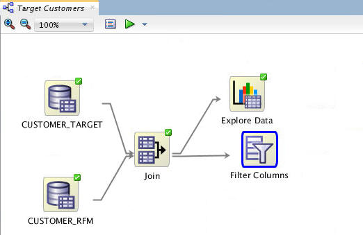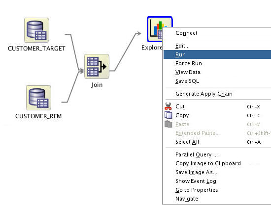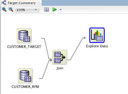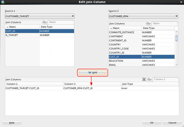 - Select CUSTOMER_TARGET as Source 1, andCUSTOMER_RFM as Source 2.