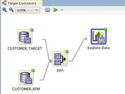 - When the update is complete, the data source and explore data nodes show a green check mark in the borders, like this: