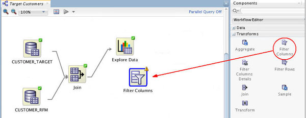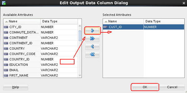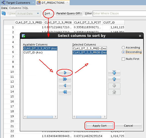 To get this information, you need to add a third column to the apply output: CUST_ID. Follow these instructions to add the customer identifier to the output: