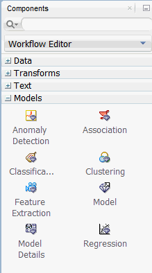 - On the upper right-hand side of the interface, the Components tab of the Workflow Editor appears.